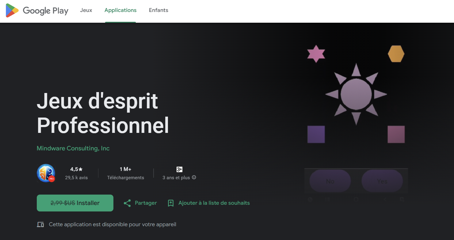 đź§ Mind Games Pro (Jeux d’esprit Professionnel) devient GRATUIT sur Android (offre limitĂ©e) !